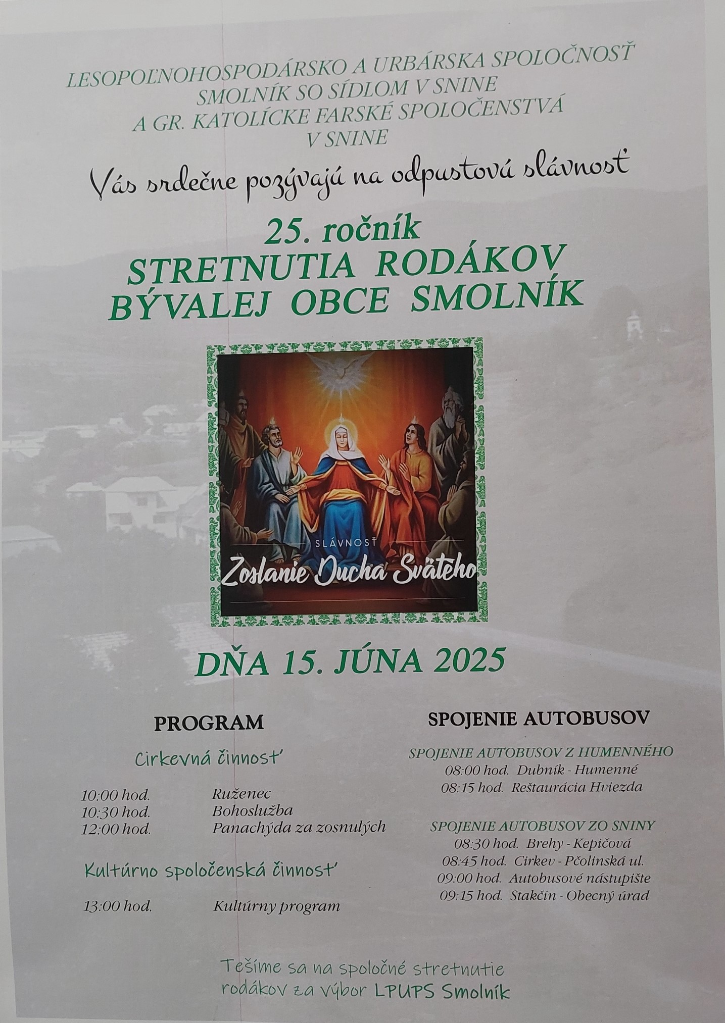 LPUS SMOLNÍK Lesopoľnohospodárska Urbárska spoločnosť – pozemkové spoločenstvo Smolník so sídlom v Snine. Pozemkové spoločenstvo SMOLNÍK Aktuality Stretnutie rodákov 2025 Valné zhromaždenie Stretnutie rodákov 2024 Valné zhromaždenie Zmeny pri vstupe do ochranného pásma Urbár Stretnutie rodákov 15.6.2025 stiahnuť Valné zhromaždenie 2025 27.4.2025 Východné Karpaty Ísť do hôr znamená ísť domov... viac